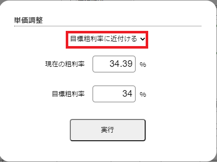 単価調整機能がついており目標の金額もしくは粗利率に近づけることが可能です。