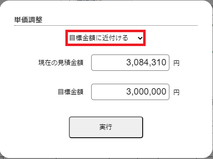 3.実行をクリックすると単価が目標に合わせて変更されます。
