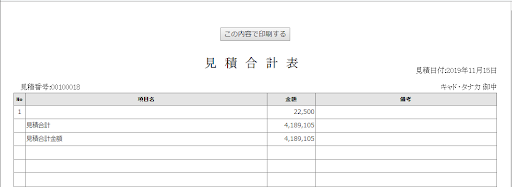 印刷する際は表示されたウィンドウを確認し、ページ上部にある「この内容で印刷する」をクリックし印刷を実行します。
